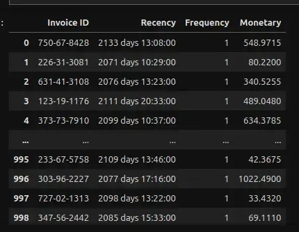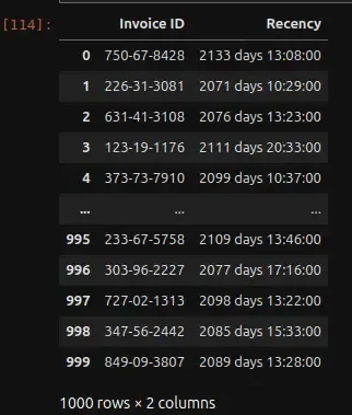 recency_data['Invoice ID'] = dataset['Invoice ID']