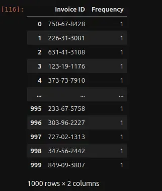 frequency_data['Invoice ID'] = dataset['Invoice ID']