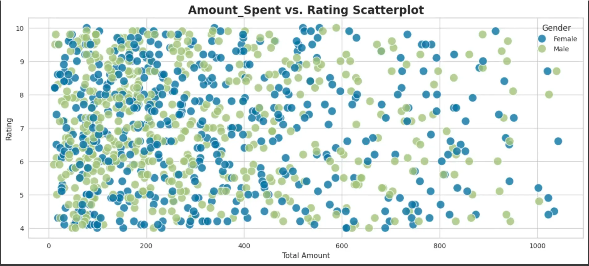 As per plot, mostly Females tend to spend on expensive products, while Males tend to spend within 800 USD.