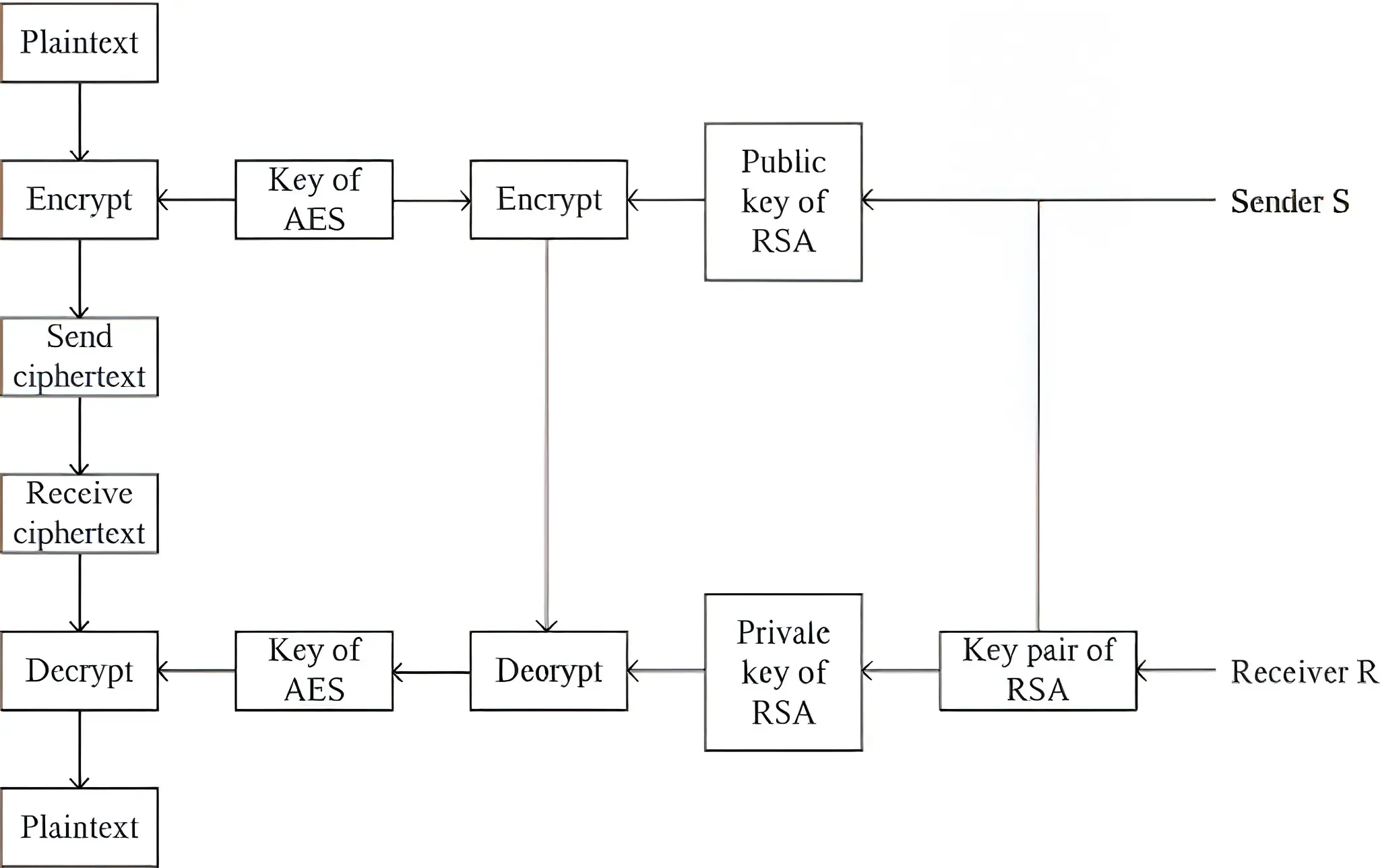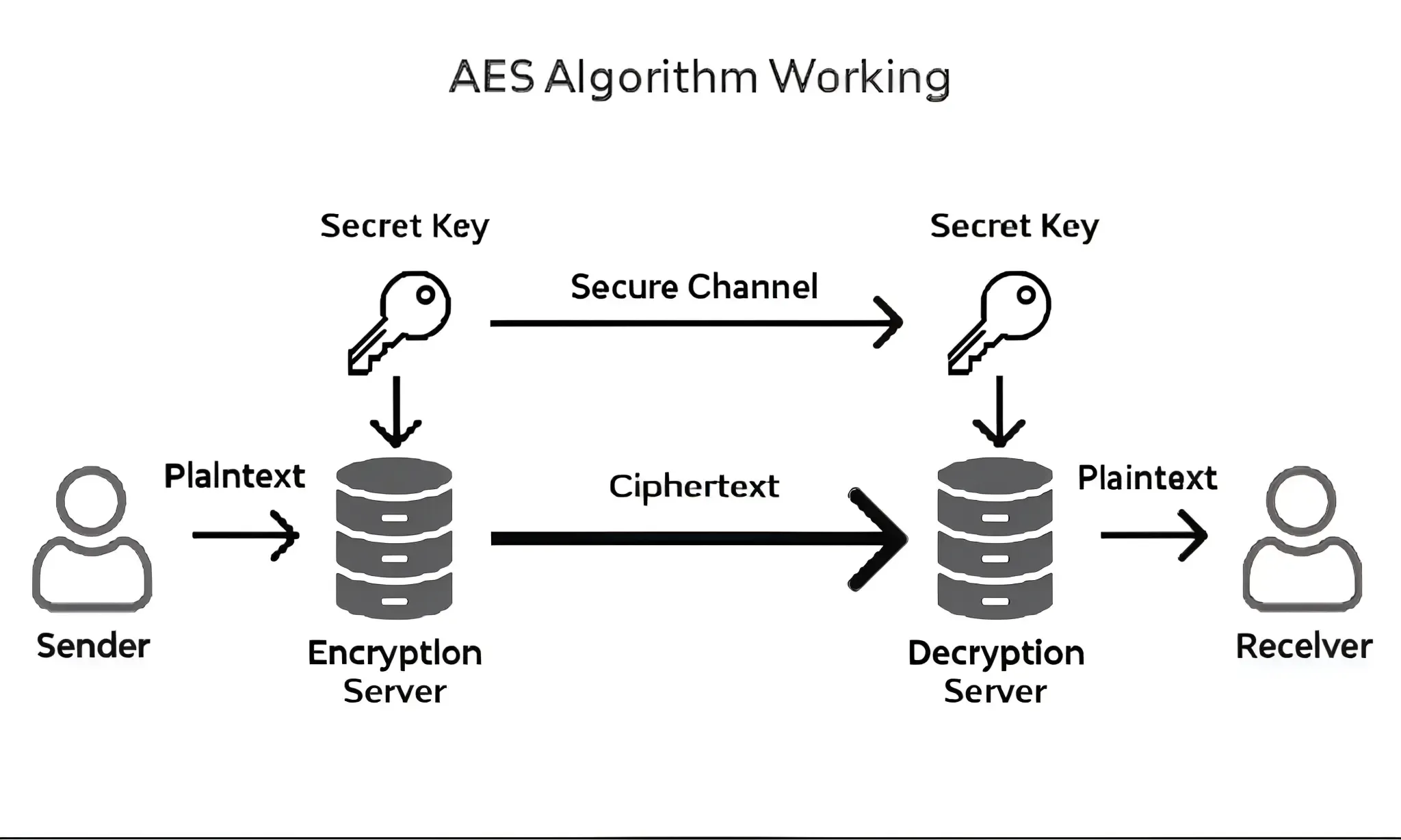 - The server retrieves the original data by decrypting it using the AES key.