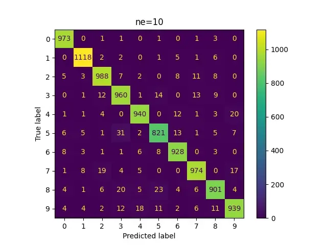 So it looks like 4 is being misclassified as 9, 6 is being misclassified as a lot of other numbers and 9 is being misclassified as 4 and 7.